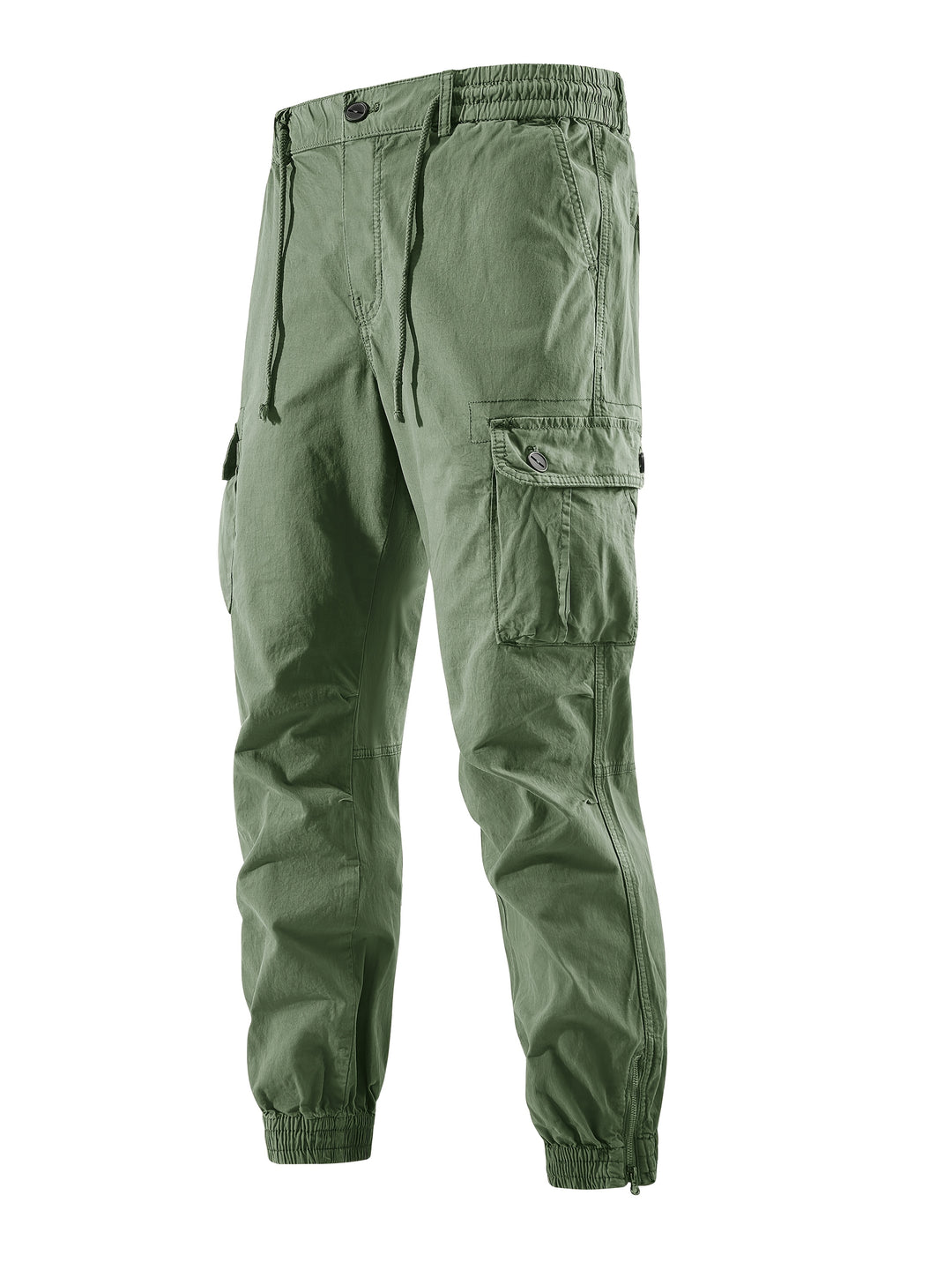 Spodnie męskie cargo z elastyczną talią kieszeniami cargo i ściągaczami na dole