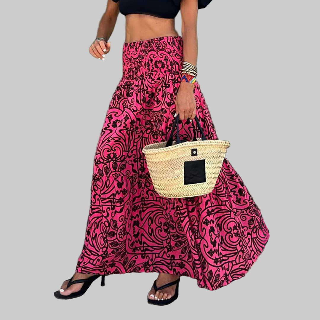 Spódnica damska z nadrukiem z elastycznym pasem do kostek i rozkloszowanym dołem
