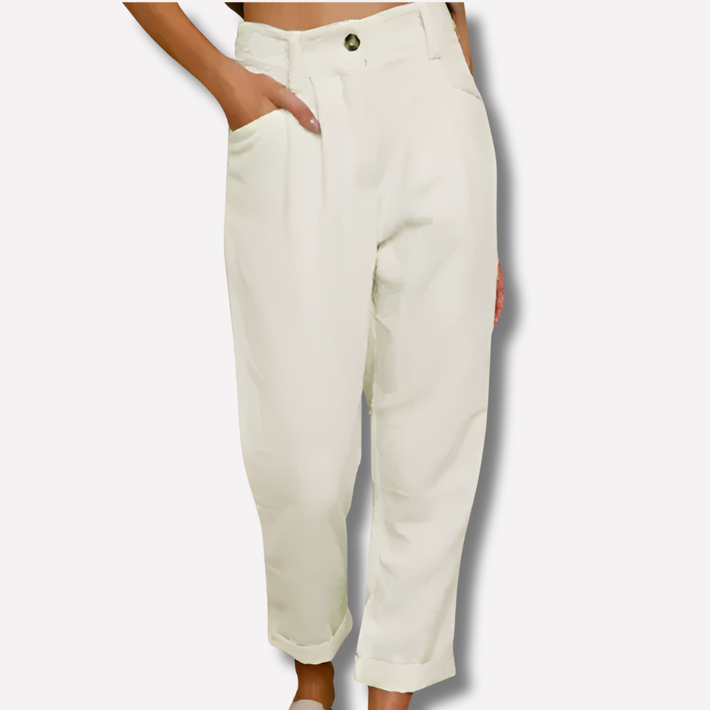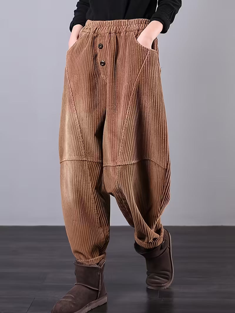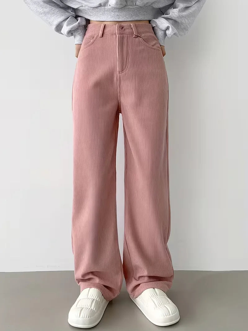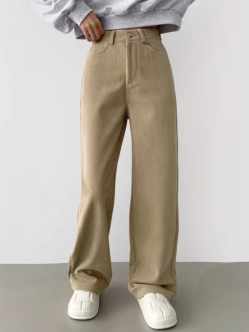 Spodnie damskie prążkowane z szerokimi nogawkami klasycznym zapięciem i bocznymi kieszeniami