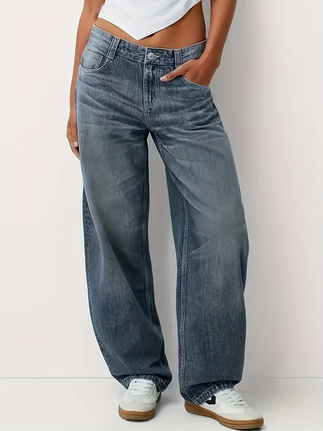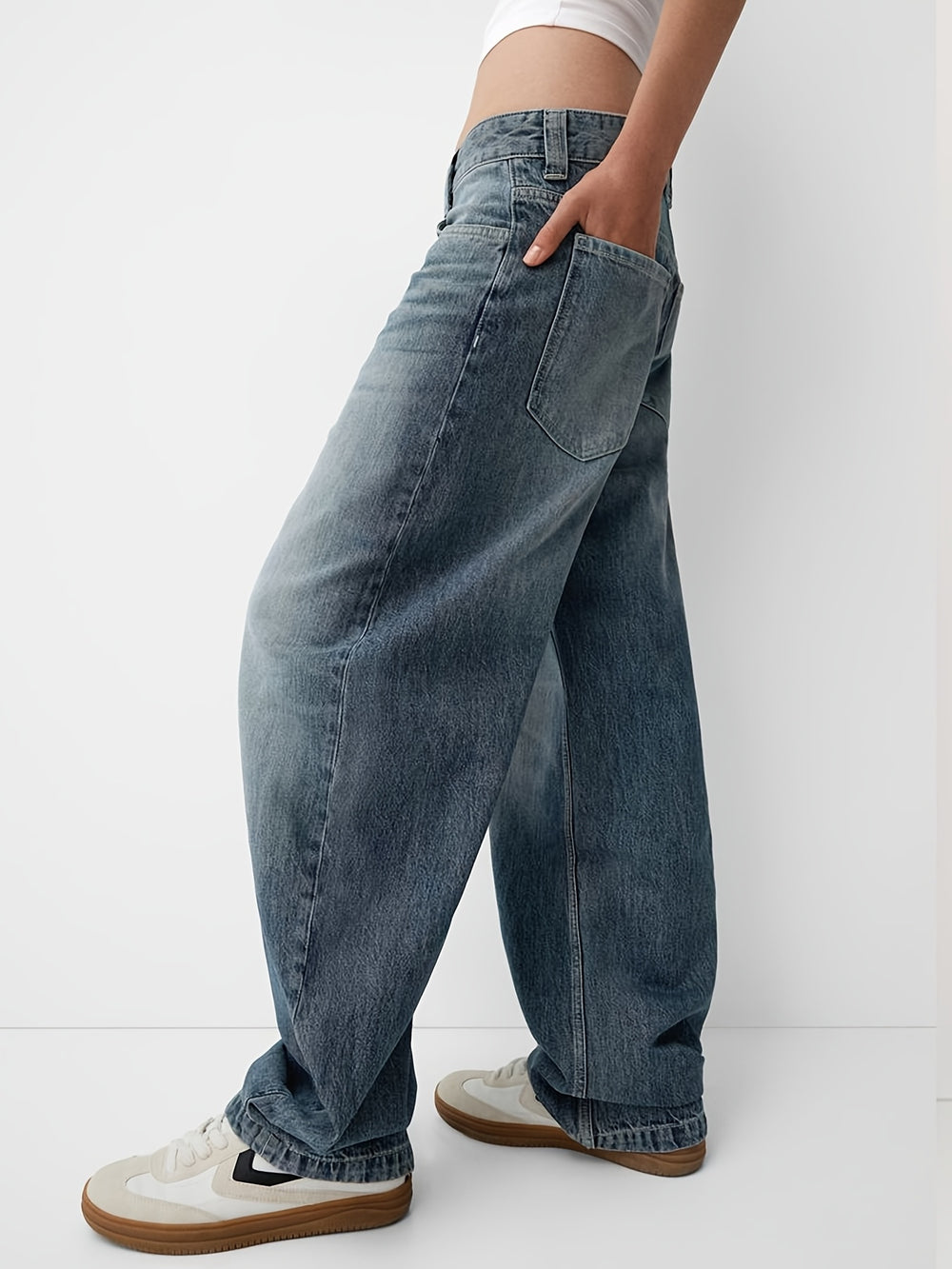 Spodnie damskie denimowe z wysokim stanem szerokimi nogawkami i suwakowym zapięciem