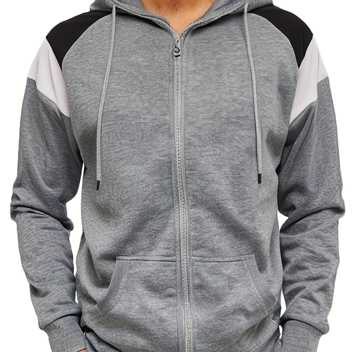 Bluza męska z kapturem z kontrastowymi wstawkami zamkiem i kieszenią kangurką