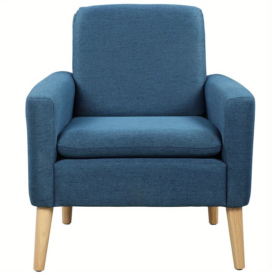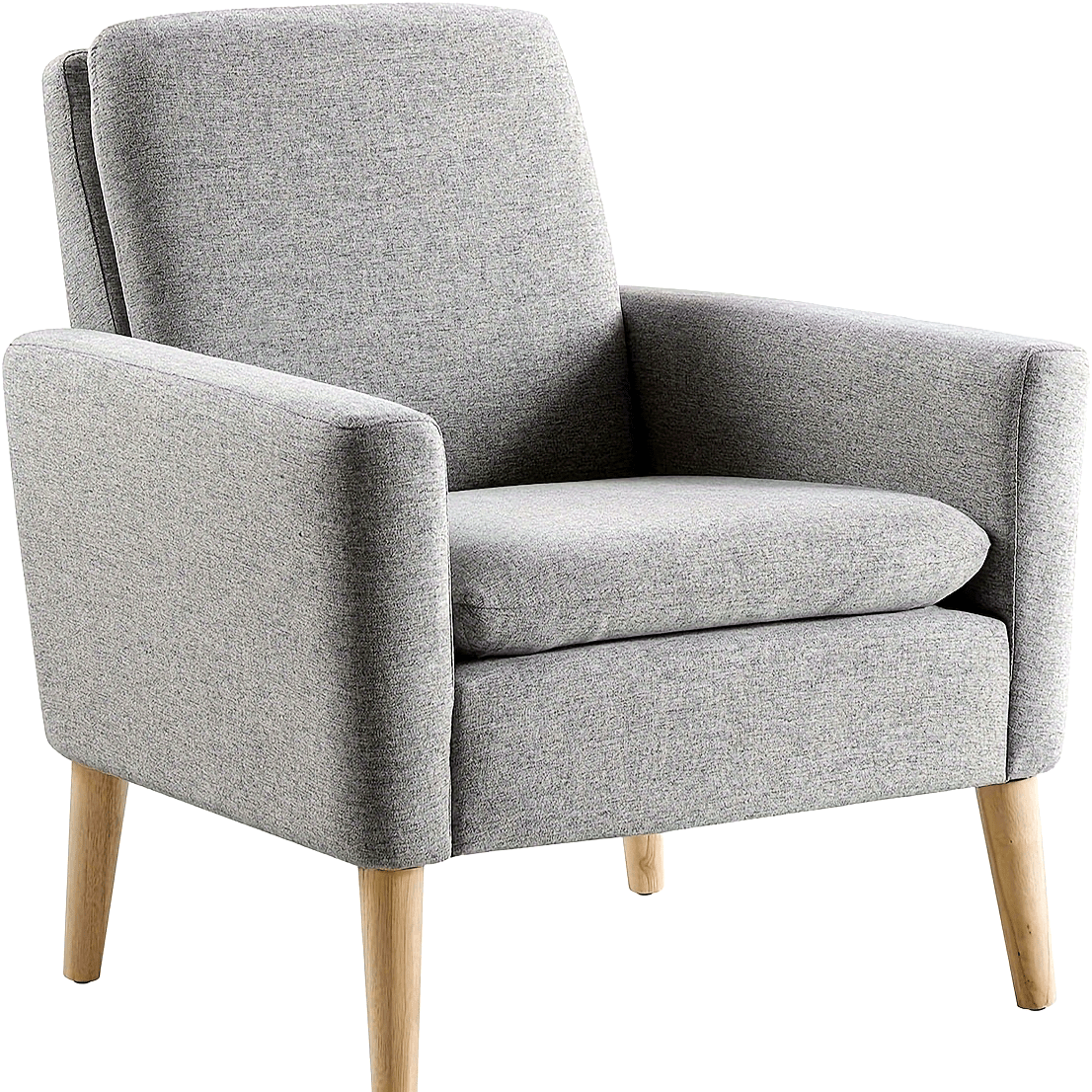Fotel o prostej, nowoczesnej formie z tapicerowanym siedziskiem i oparciem. Ma wąskie podłokietniki i drewniane nogi w naturalnym odcieniu. Całość jest stabilna i dobrze pasuje do wnętrz o współczesnym wystroju. Sprawdza się w salonie, sypialni lub gabinecie jako samodzielne siedzisko.