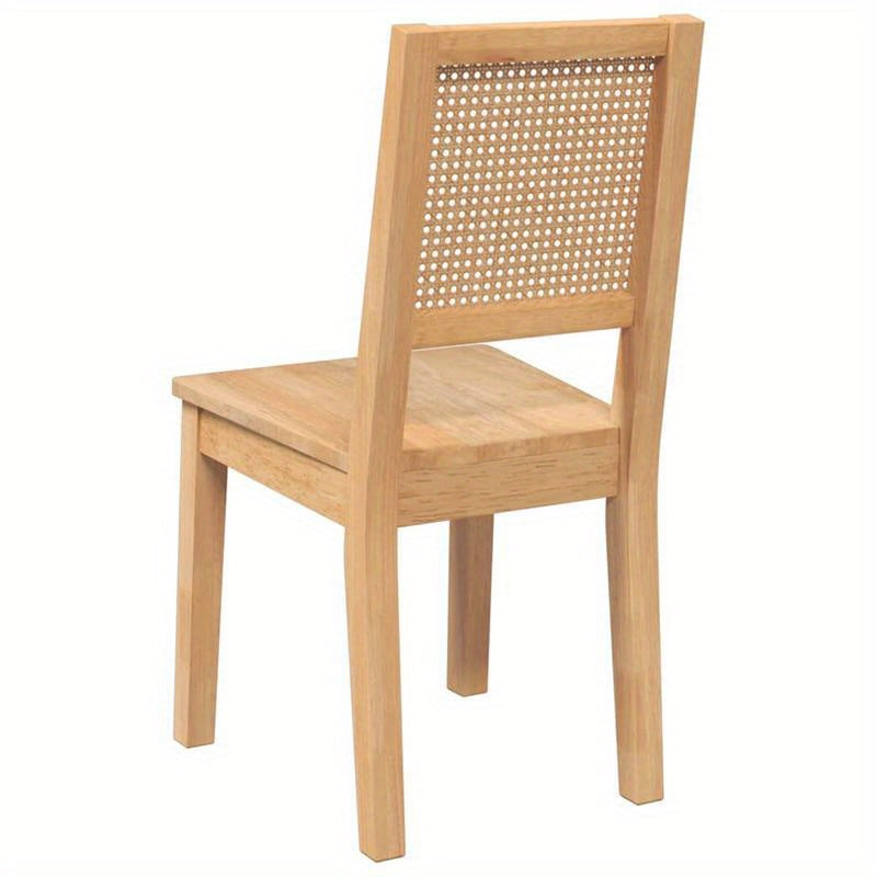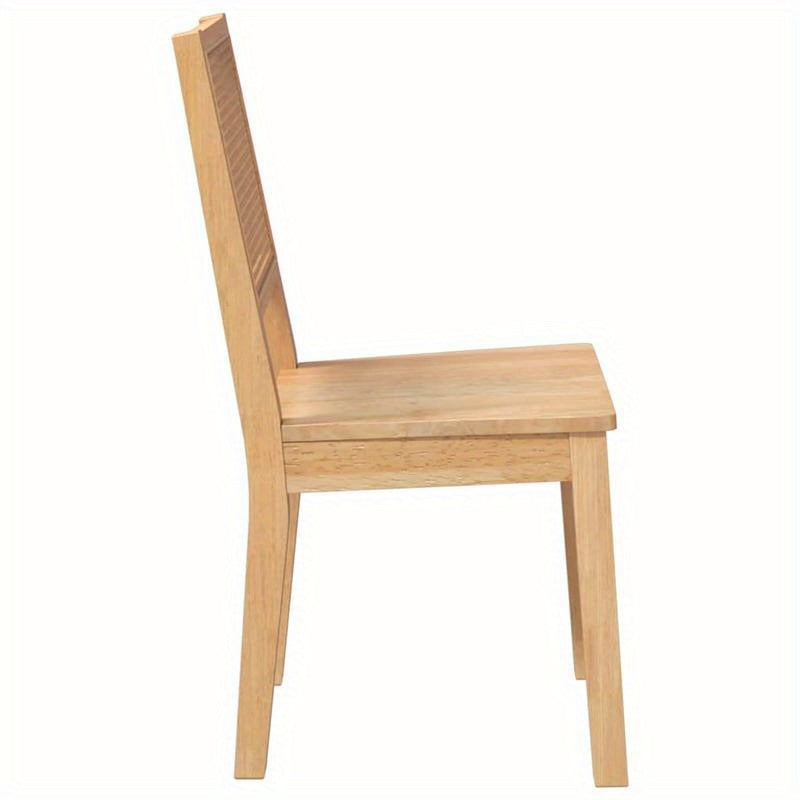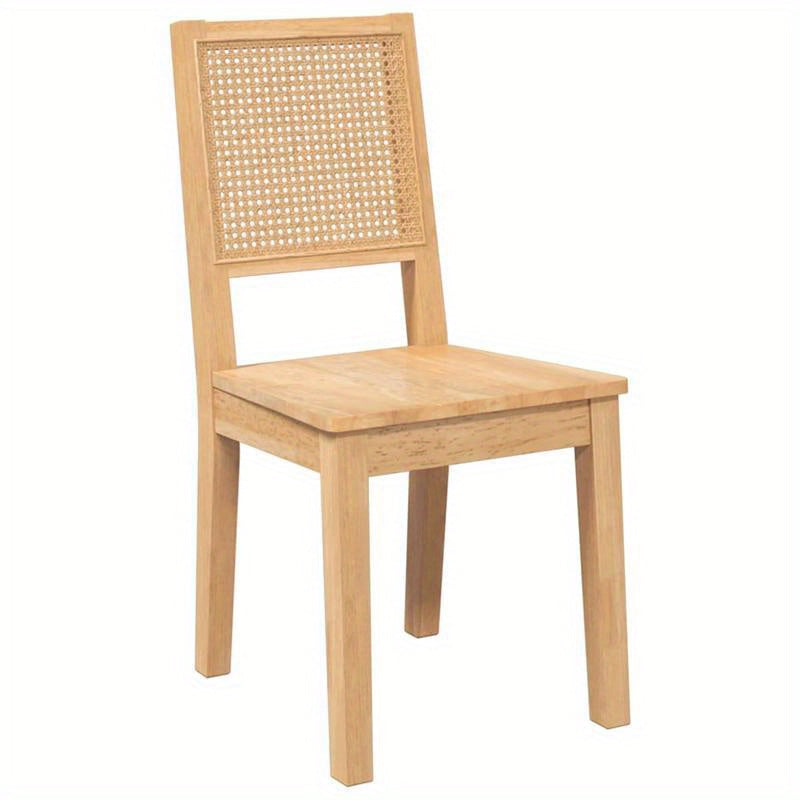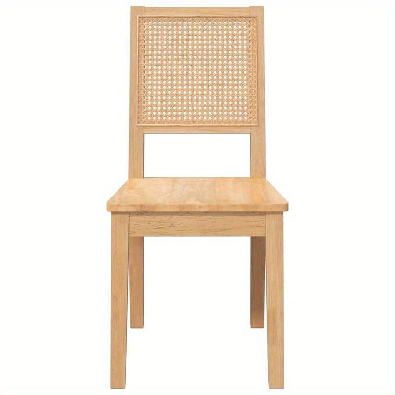Krzesło o prostej, równomiernej formie z pełnym drewnianym siedziskiem i oparciem wypełnionym gęstą, ażurową plecionką. Wyraźna, prostokątna rama oparcia nadaje całości spokojny, uporządkowany wygląd inspirowany tradycyjnymi meblami z naturalnych materiałów. Może służyć jako codzienne miejsce do siedzenia przy stole lub jako uzupełnienie aranżacji w domowej przestrzeni.