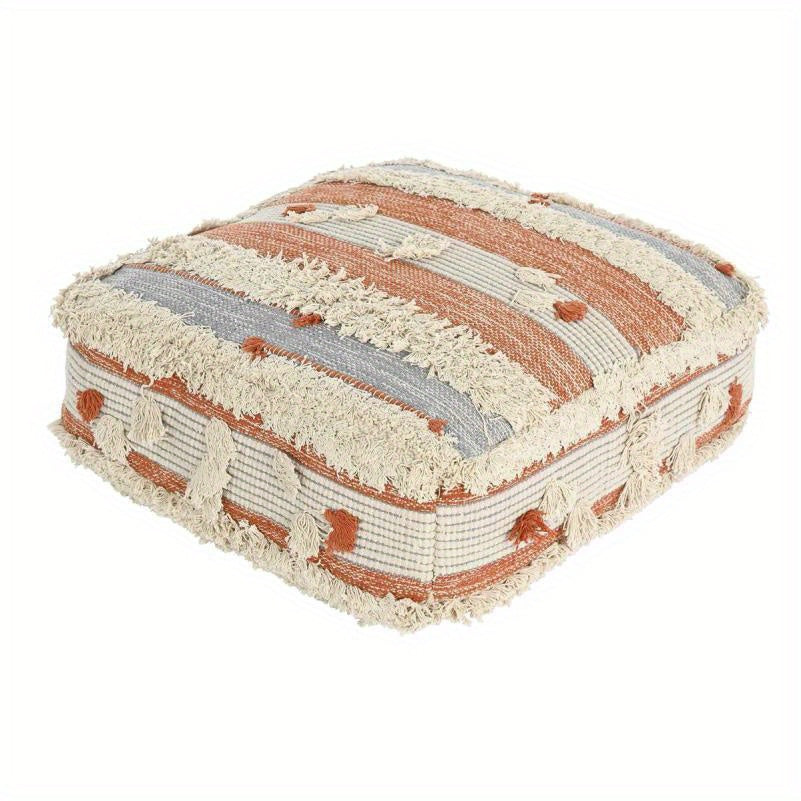 Pufa z ozdobnym splotem i frędzlami w pasmowym układzie