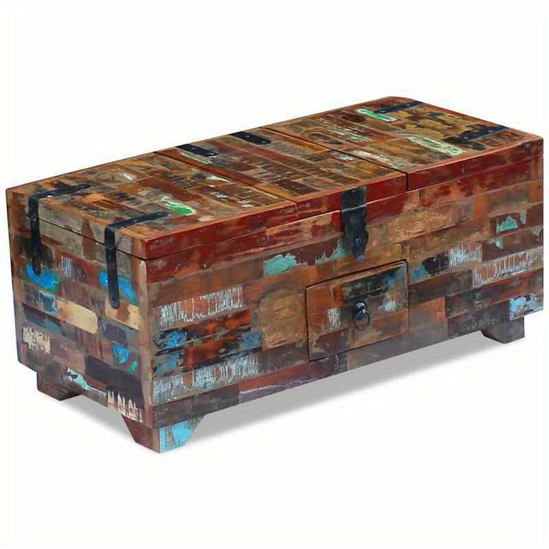 Stolik kawowy w formie kufra o postarzanym wyglądzie z szufladą