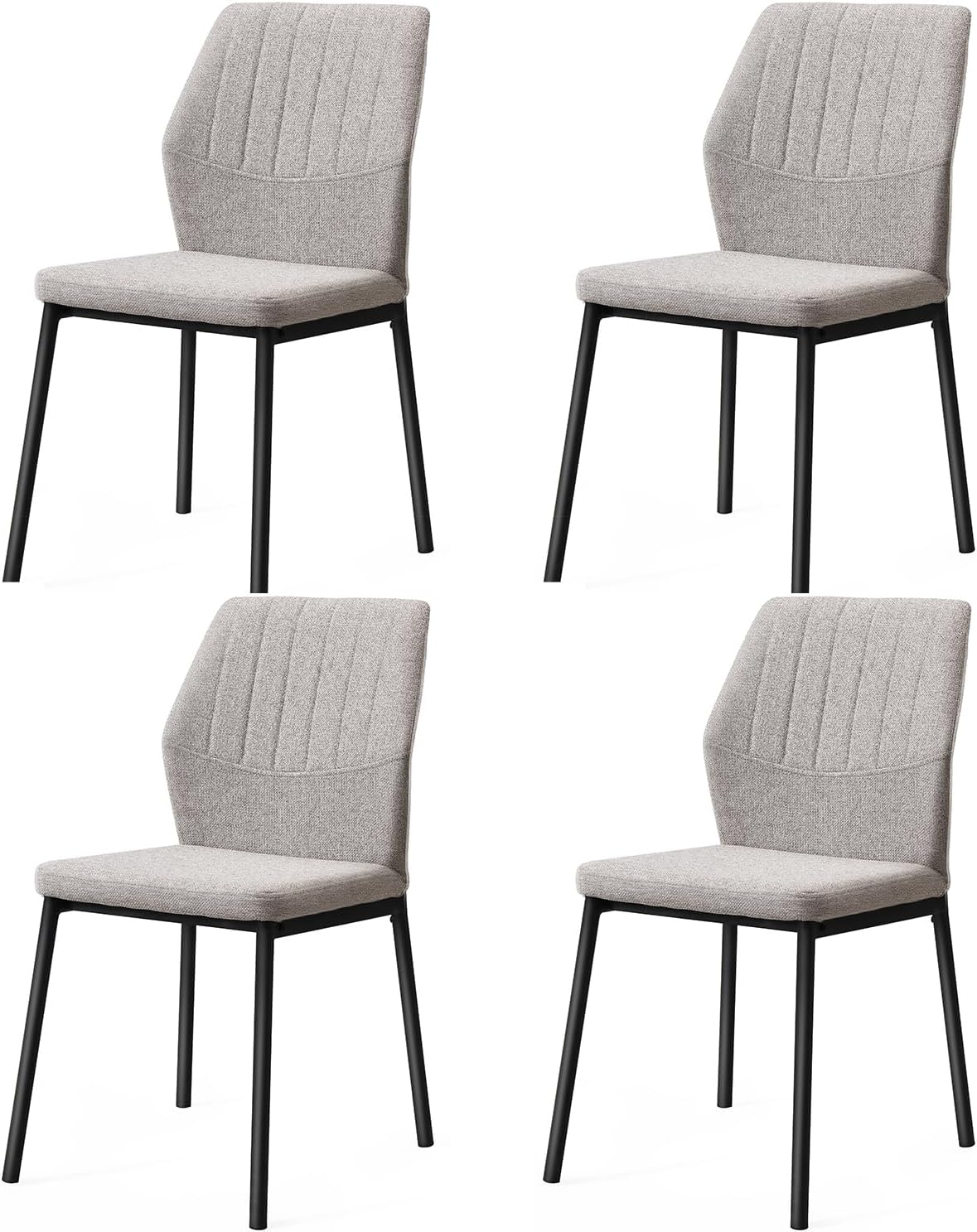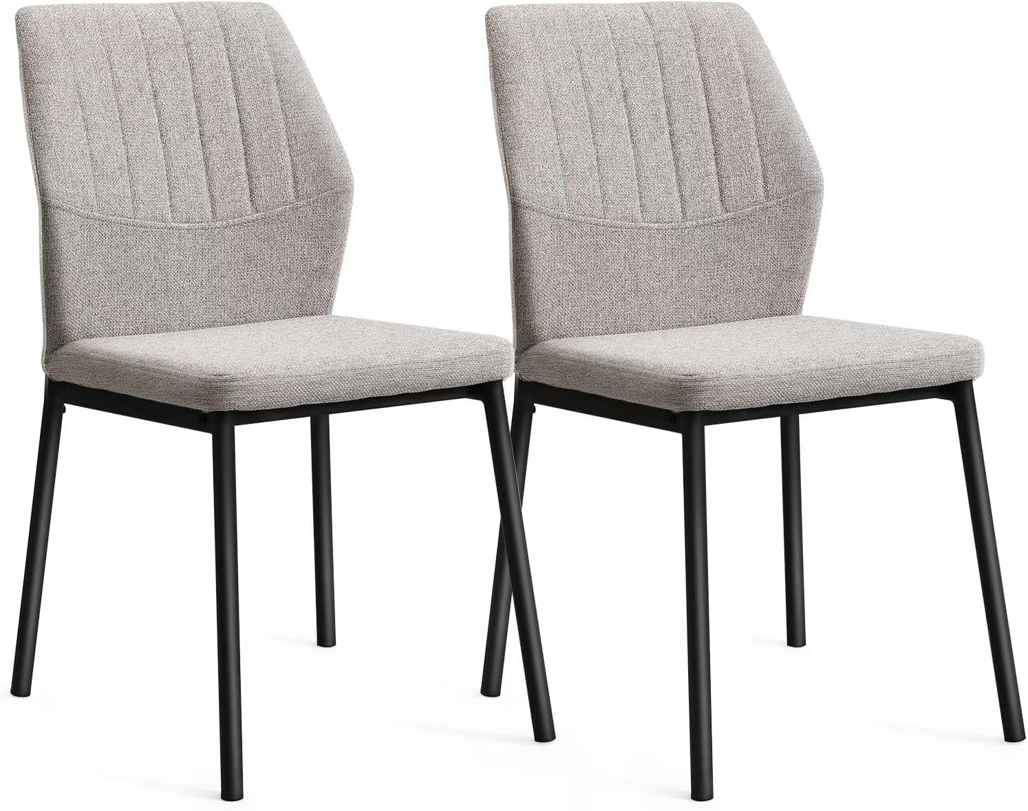 Krzesła o nowoczesnej, prostej formie z zaoblonym oparciem i pionowymi przeszyciami nadającymi mu wyraźną strukturę. Siedzisko ma jednolitą powierzchnię, a całość opiera się na metalowej ramie o prostych nogach, co podkreśla spokojny, minimalistyczny charakter. Mogą służyć jako codzienne miejsca do siedzenia przy stole lub jako uzupełnienie aranżacji w domowej przestrzeni.